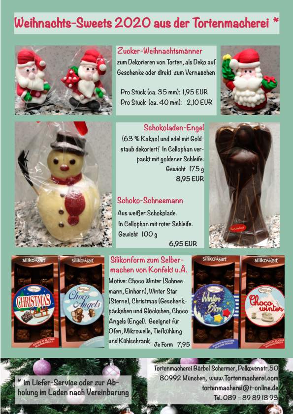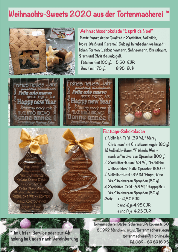 da die neuen Coronaregeln eure Bewegungsfreiheit begrenzen, habe ich einen Bestell-Flyer für die Weihnachts-Sweets der Tortenmacherei erstellt. Neben Abholung im Laden in der Pelkovenstraße 50 ist in München auch Lieferung sowie Postversand möglich… Viel Spaß beim Stöbern!